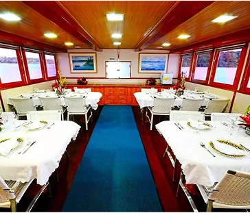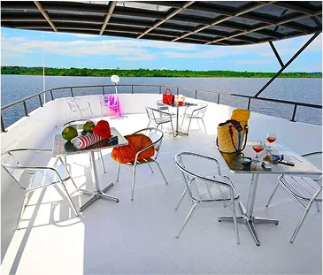 Upper deck with sunset views, lounge with bar, games and a relaxing atmosphere.