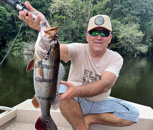 Passionate about fishing with artificial lures, his favorite fish is the peacock bass – a true trophy of the Amazon waters. Recognized for his expertise and dedication, he earned the nickname “Old Man of the River”, affectionately given by fishermen who see him as an iconic figure in the Amazon.